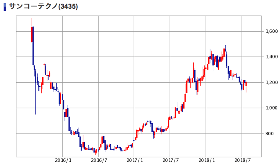| (3435)サンコーテクノ | 株価 (2018/7/27 終値) | 1,202円 |