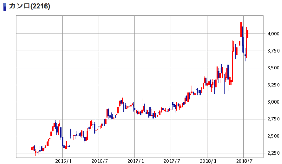 | (2216)カンロ | 株価 (2018/7/27 終値) | 4,050円 |