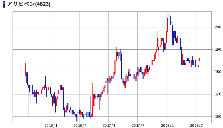 | (4623)アサヒペン | 株価 (2018/7/27 終値) | 186円 |
