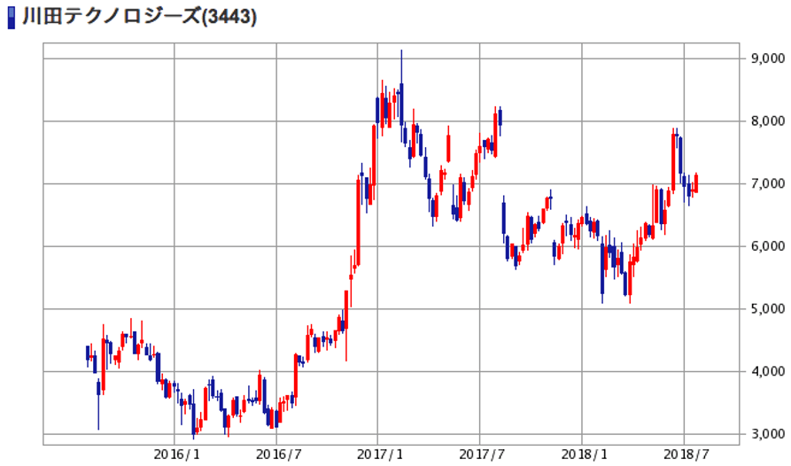 | (3443)川田テクノロジーズ | 株価 (2018/7/27 終値) | 7,140円 |