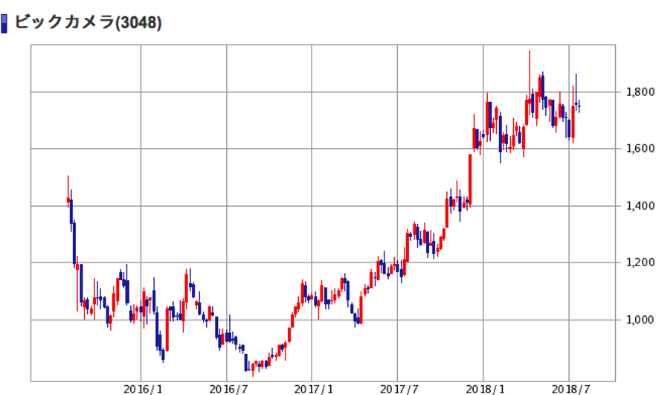 | (3048)ビックカメラ | 株価 (2018/7/27 終値) | 1,749円 |