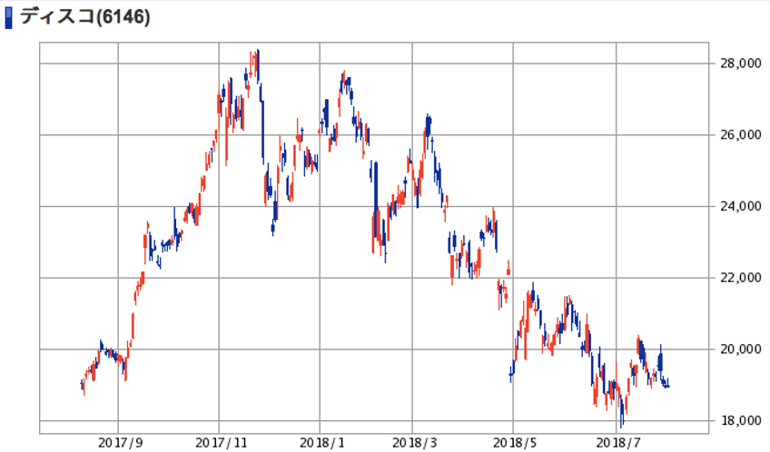 | ディスコ | 4.98% | 19,570円 | 18,970円 | -3.07% |