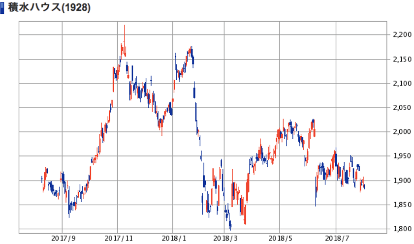 | 積水ハウス | 0.69% | 1,911.5円 | 1,901.5円 | -0.52% |