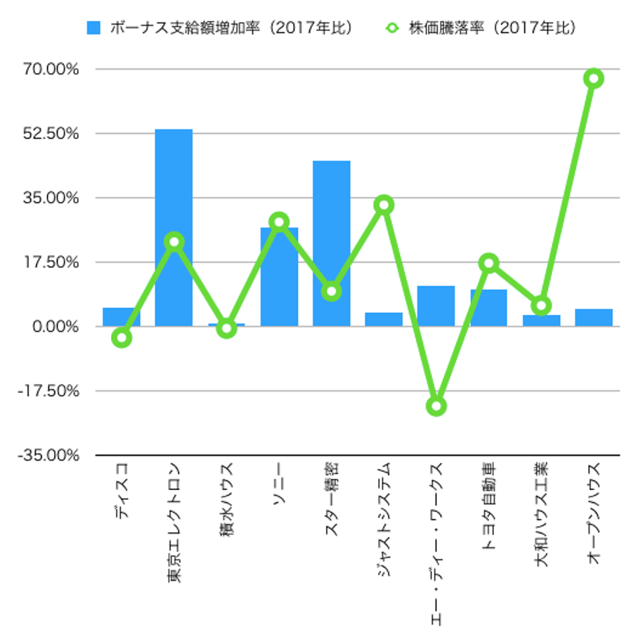 ボーナスが上がった企業ほど業績も上がっているはず、それなら株価も上がっているのではないか?