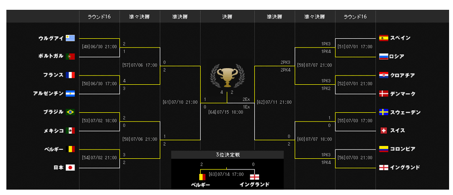 日本を破ったベルギーは3位、優勝はフランスという結果となっています。