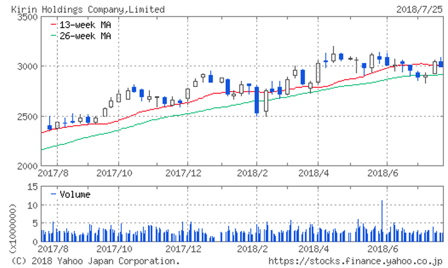 | (2503)キリンHD | 株価 (2018/7/25 終値) | 2,998円 |