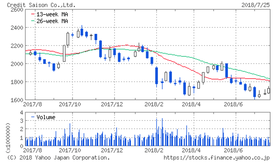 | (8253)クレディセゾン | 株価 (2018/7/25 終値) | 1,727円 |