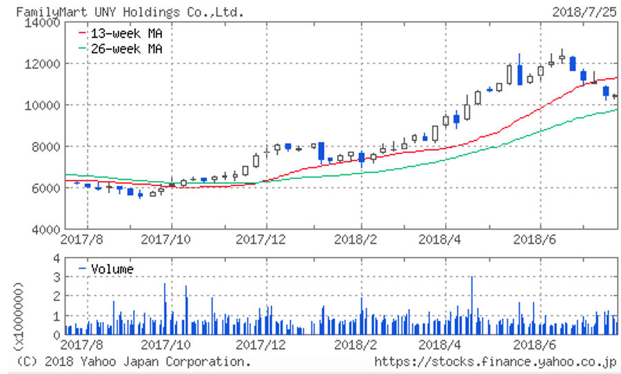 | (8028)ユニー・ファミリーマートHD | 株価 (2018/7/25 終値) | 10,450円 |