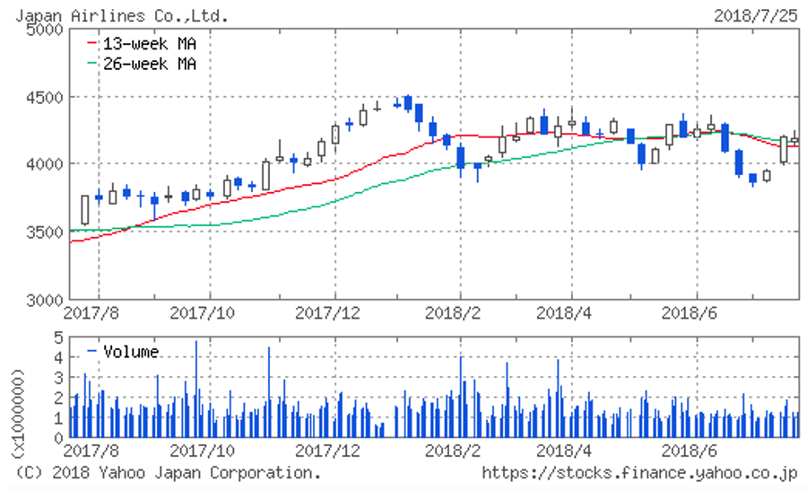 | (9201)日本航空 | 株価 (2018/7/25 終値) | 4,191円 |