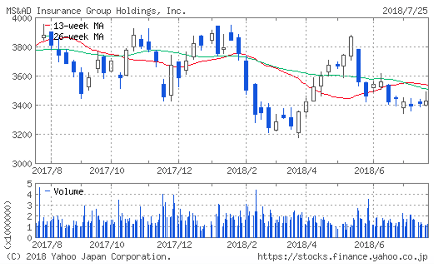 | (8725)MS&ADインシュアランスグループ | 株価 (2018/7/25 終値) | 3,427円 |