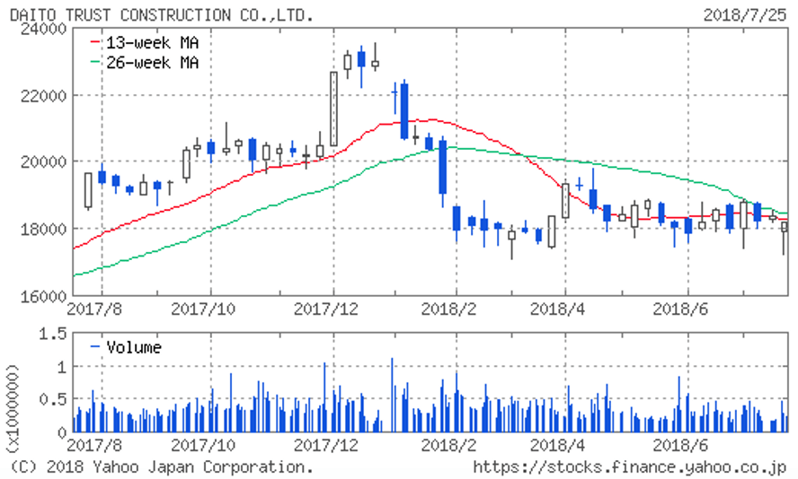 | (1878)大東建託 | 株価 (2018/7/25 終値) | 18,180円 |