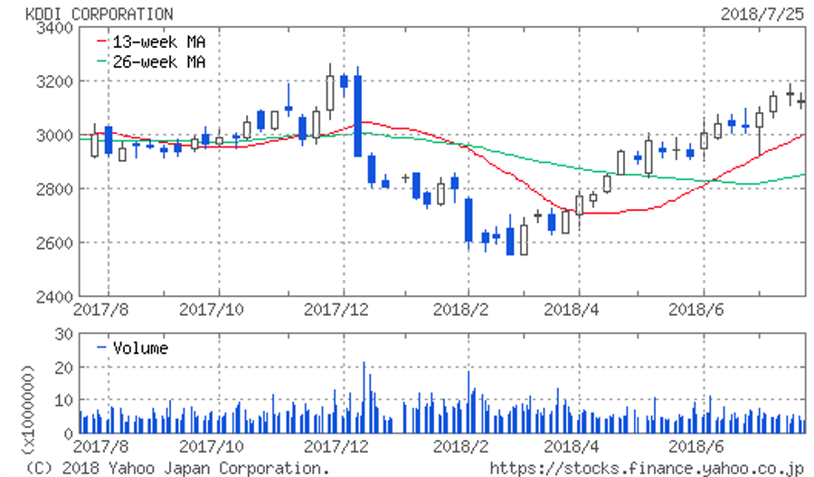| (9433)KDDI | 株価 (2018/7/25 終値) | 3,126円 |