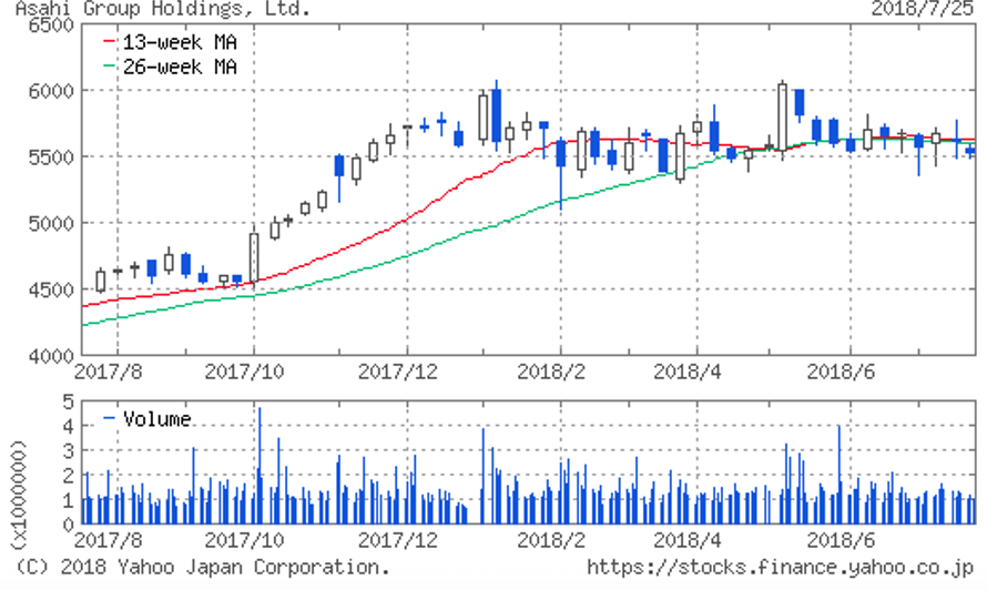 | (2502)アサヒグループHD | 株価 (2018/7/25 終値) | 5,527円 |