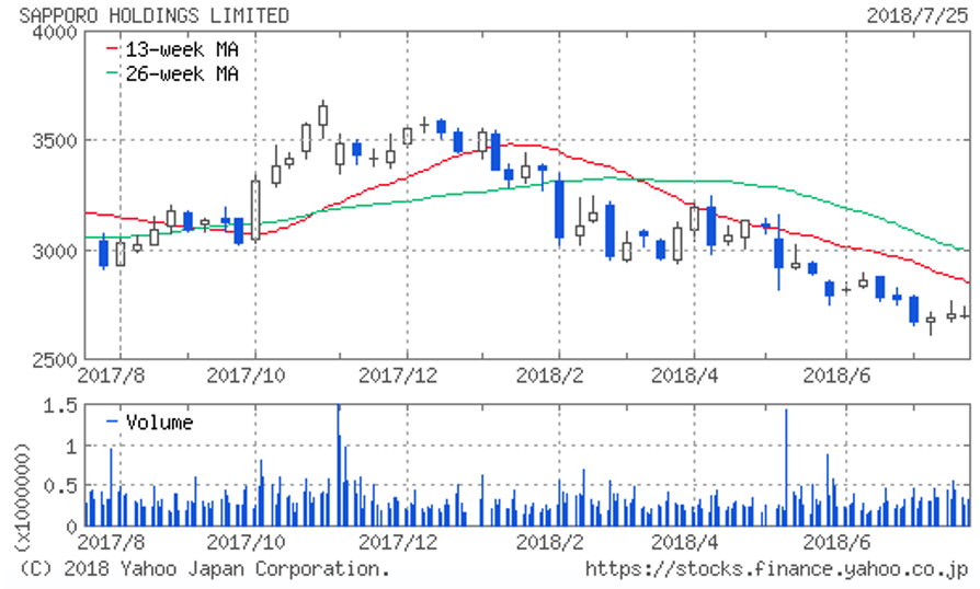 | (2501)サッポロHD | 株価 (2018/7/25 終値) | 2,701円 |