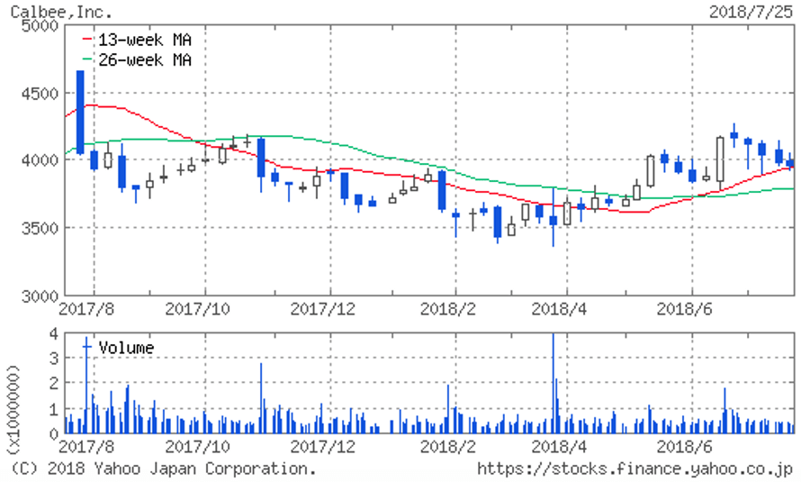 | (2229)カルビー | 株価 (2018/7/25 終値) | 3,960円 |