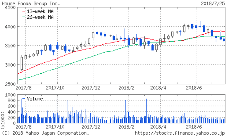 | (2810)ハウス食品グループ | 株価 (2018/7/25 終値) | 3,620円 |